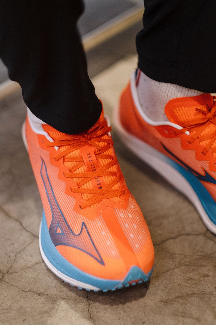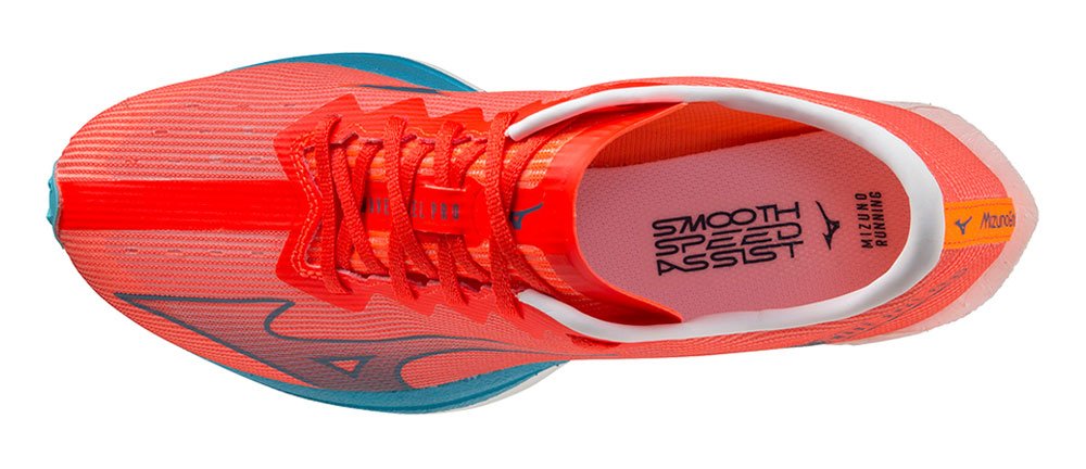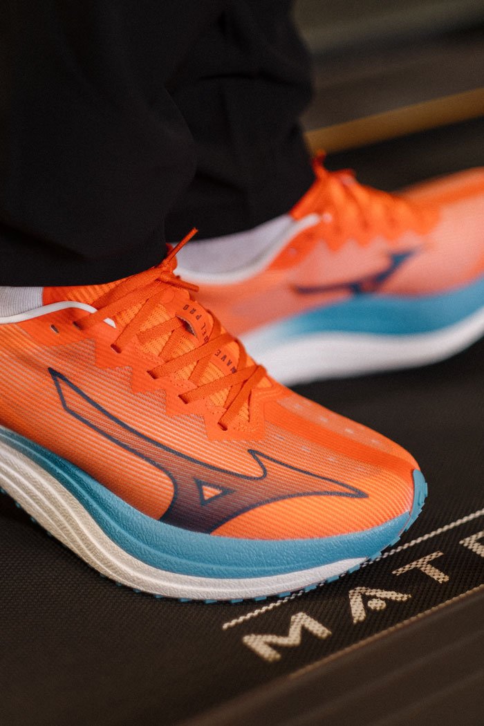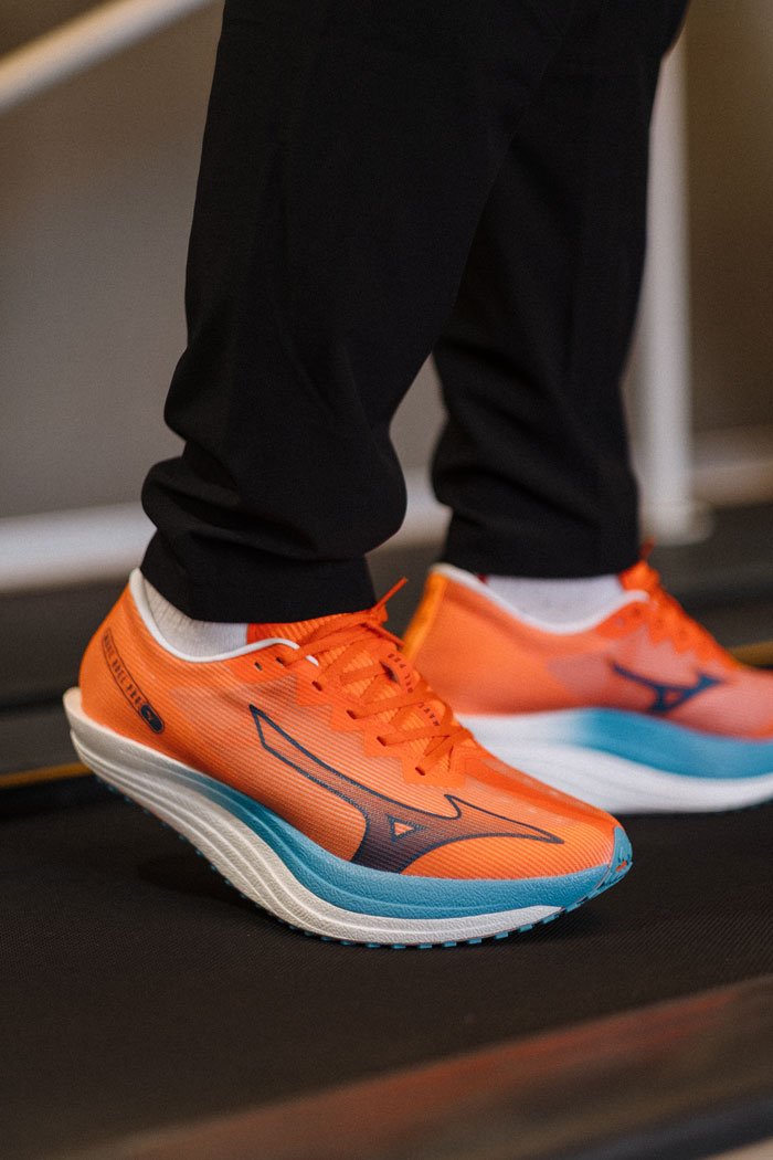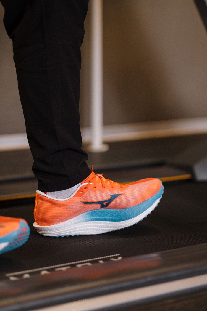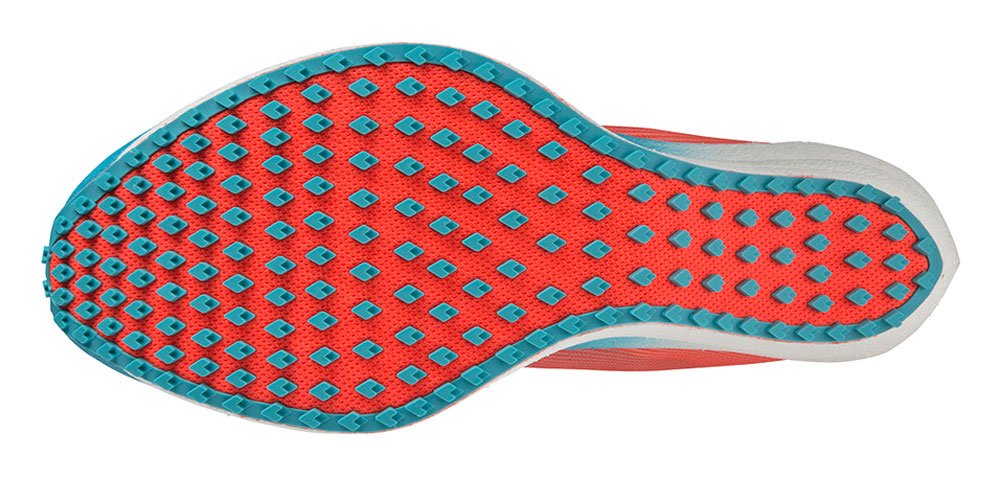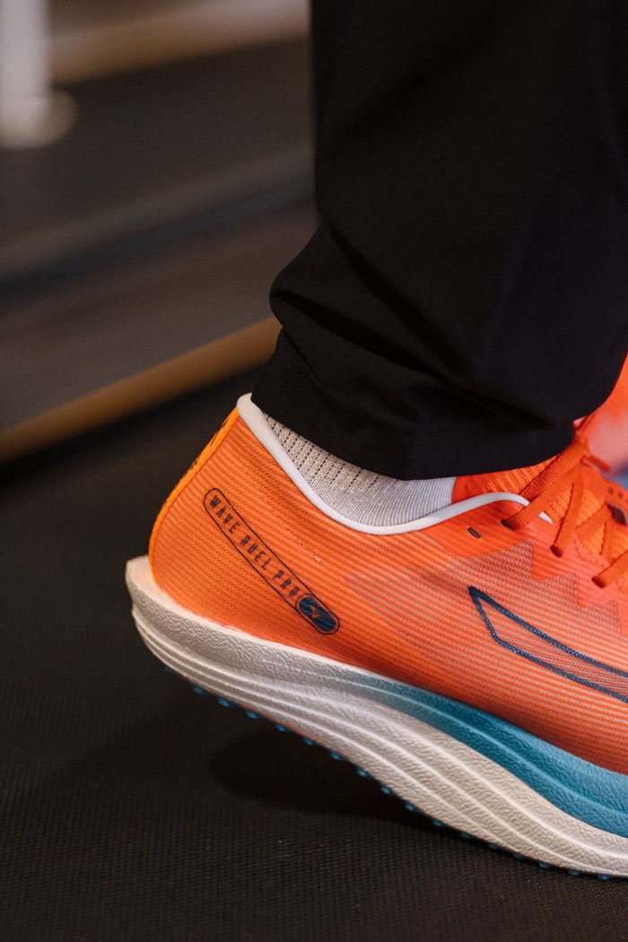 Из-за смещенного вперед центра тяжести конфигурация кроссовок располагает просторной передней частью для комфортного размещения пальцев, а средняя и пяточная часть заужены для плотного обхвата и надежной фиксации стопы во время бега.