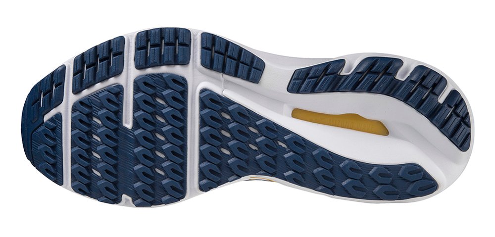 В средней и пяточной части подошвы размещается слой упругой пены Mizuno Energy, которая обеспечивает отличную амортизацию и возврат энергии. Специальная двойная конструкция волны поддерживает внутренний свод стопы.