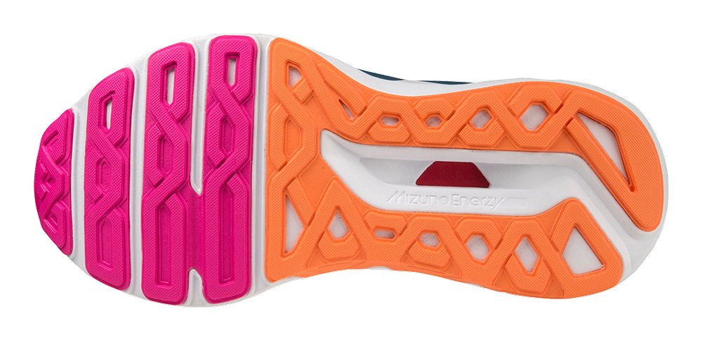 Амортизирующие слои подошвы состоят из материалов Mizuno Enerzy Core и Mizuno Wave - их сочетание обеспечивает высокую устойчивость без ущерба для амортизации. Технология Mizuno Enerzy Core дарит комфортные ощущения и высокую отдачу энергии, так как изготовлена из ультрамягкой и упругой пены. Технология Mizuno Wave в сочетании с резиновыми боковыми стенками распреде