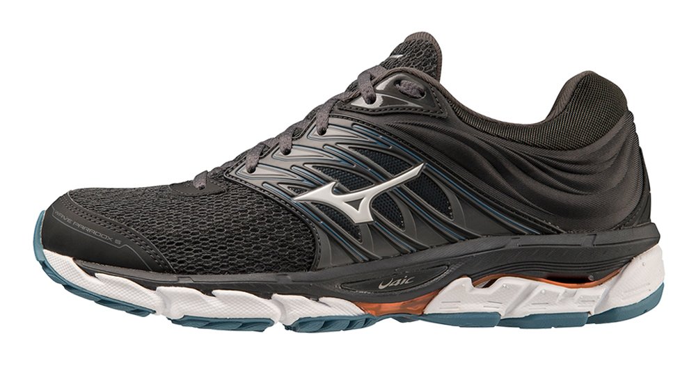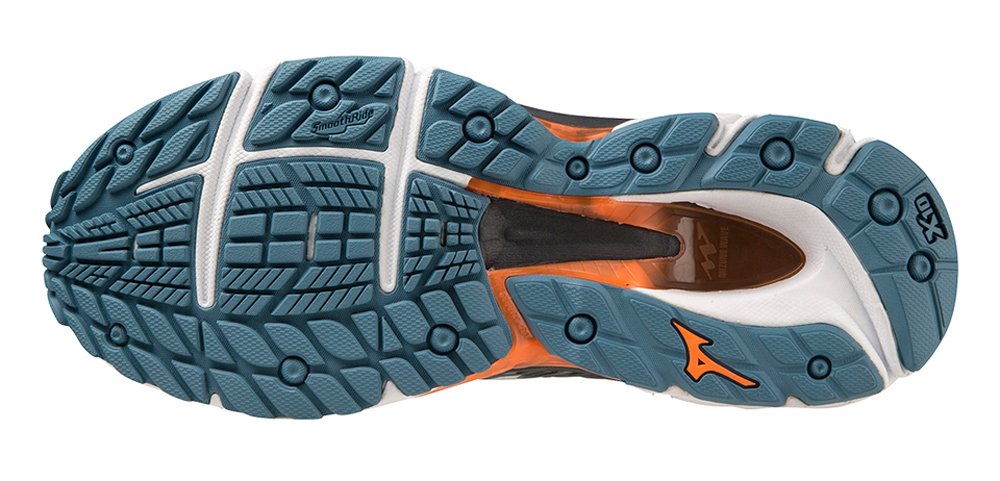 - Новейшая волнообразная вставка Fan-shaped Wave рассеивает ударную нагрузку по промежуточной подошве. Это способствует более плавному перекату с пятки на носок и сохраняет энергичность отталкивания.
