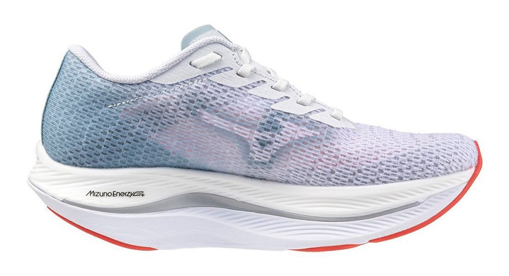 Лёгкая и мягкая пена Mizuno Enerzy Lite+ в верхнем слое межподошвы обеспечивает амортизацию и возврат энергии, а нижняя межподошва Mizuno Enerzy - скорость и высокую износостойкость. Enerzy Lite+ и Enerzy тесно взаимодействуют друг с другом, обеспечивая оптимальную амортизацию и упругость. Волнообразная пластина Mizuno Wave из пластика в сочетании со стекловолокном изнашивается медленнее, чем карбоновые пластины, что делает эту модель идеальной для тренировок. Пластина расположена полностью на передней части стопы, что обеспечивает мощный толчок и равномерное распределение ударной нагрузки.