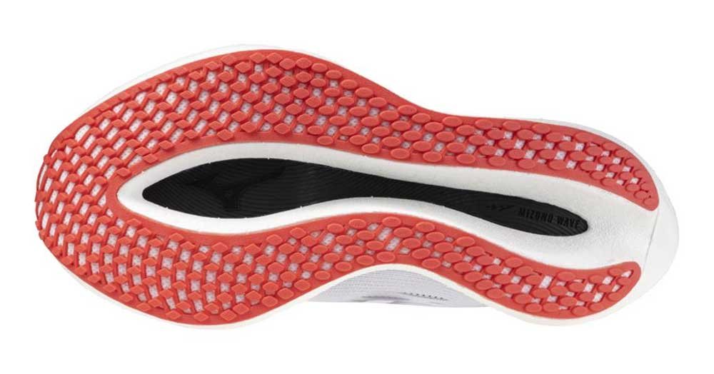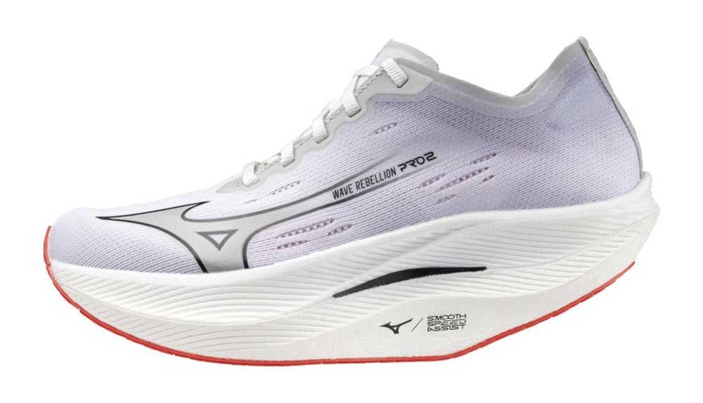Подошва по-прежнему состоит из двух слоев амортизирующей пены: верхняя промежуточная подошва Mizuno Enerzy Lite+ обеспечивает мягкость и отзывчивость, а нижняя Mizuno Enerzy Lite - сохраняет ощущение легкости и скорости. Между двумя слоями пены размещена волнообразная карбоновая пластина для повышения упругости и силы отскока во время отталкивания. Несмотря на то, что в Rebellion Pro 2 ощущается более сильное покачивание, чем в предыдущей версии, на самом деле перепад от пятки к носку у них меньший (1,5 миллиметра против 4).