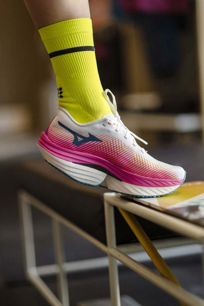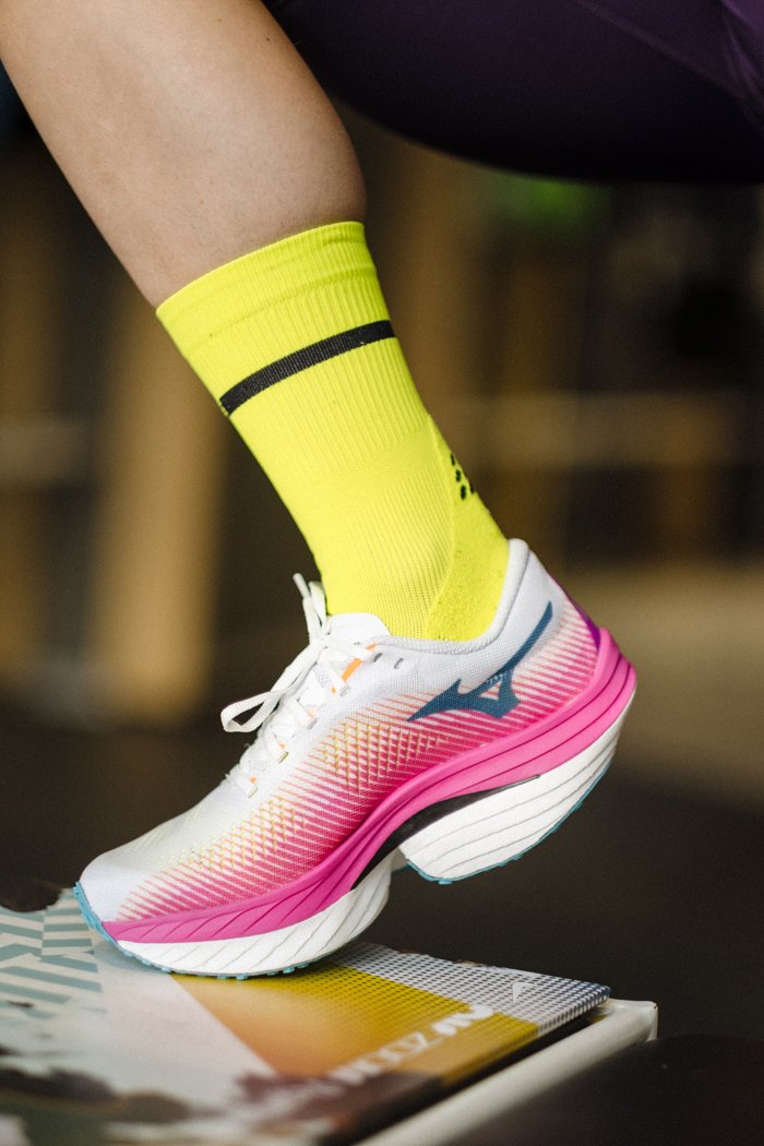 Подошва состоит двух слоев технологичной пены: верхняя промежуточная подошва Mizuno Enerzy Lite+ обеспечивает новый уровень мягкости и отзывчивости, а нижняя Mizuno Enerzy Lite - сохраняет ощущение легкости и скорости. Между двумя слоями пены размещена карбоновая пластина, повышающая упругость и гибкость подошвы во время отталкивания.