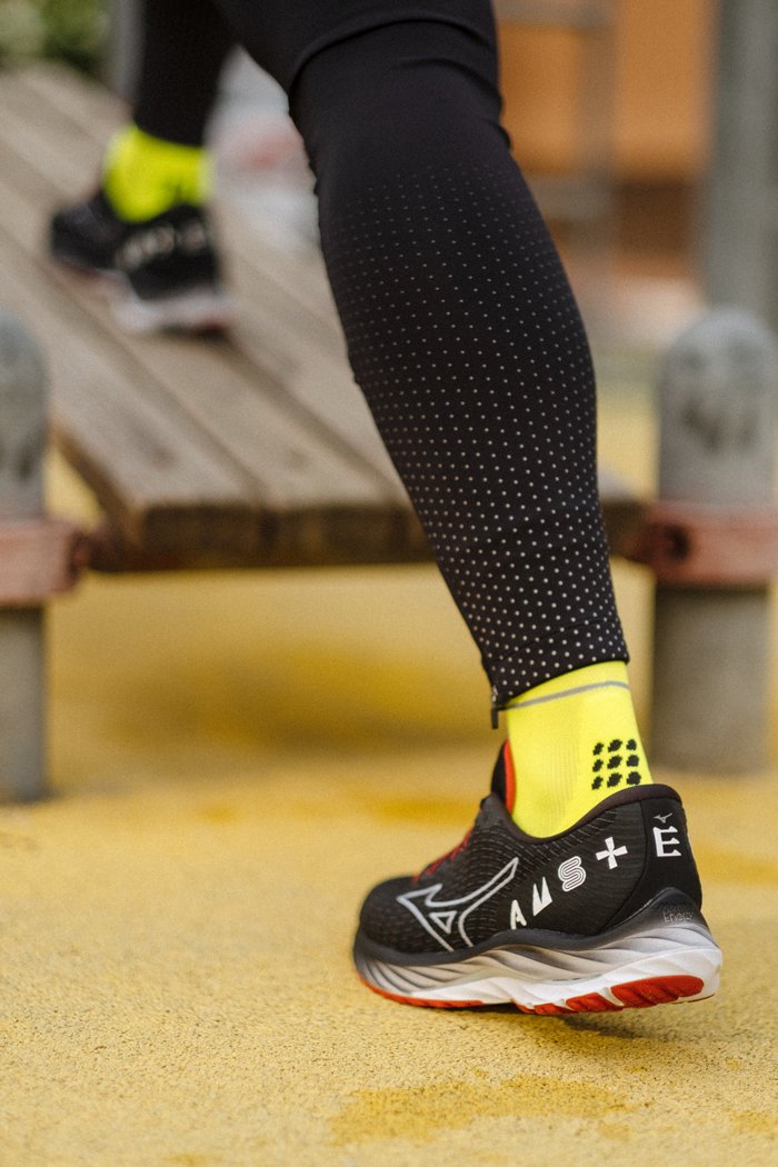 В 26 версии подошва Mizuno Energy стала на 2 мм толще, чем в предыдущей версии, что создает дополнительную мягкость и повышает упругость и комфорт во время отталкивания и приземления. Фирменная пластина Wave погружена в слой пены Mizuno Energy. Пластина Wave сконструирована в виде жесткой и упругой волны, поэтому она эффе