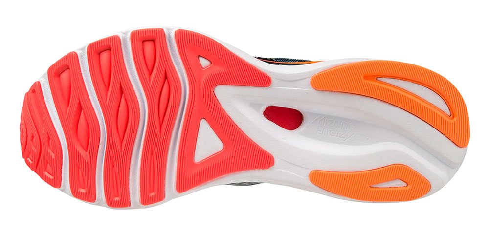 Легкий пеноматериал Mizuno Enerzy Core внутри амортизирующей платформы создает высокий уровень возврата энергии, а Mizuno Enerzy Foam по всей длине подошвы усиливает амортизацию и упругость. Технология Wave с волнистой структурой из EVA и с двумя слоями разной твердости повышает устойчивость и стабильность.