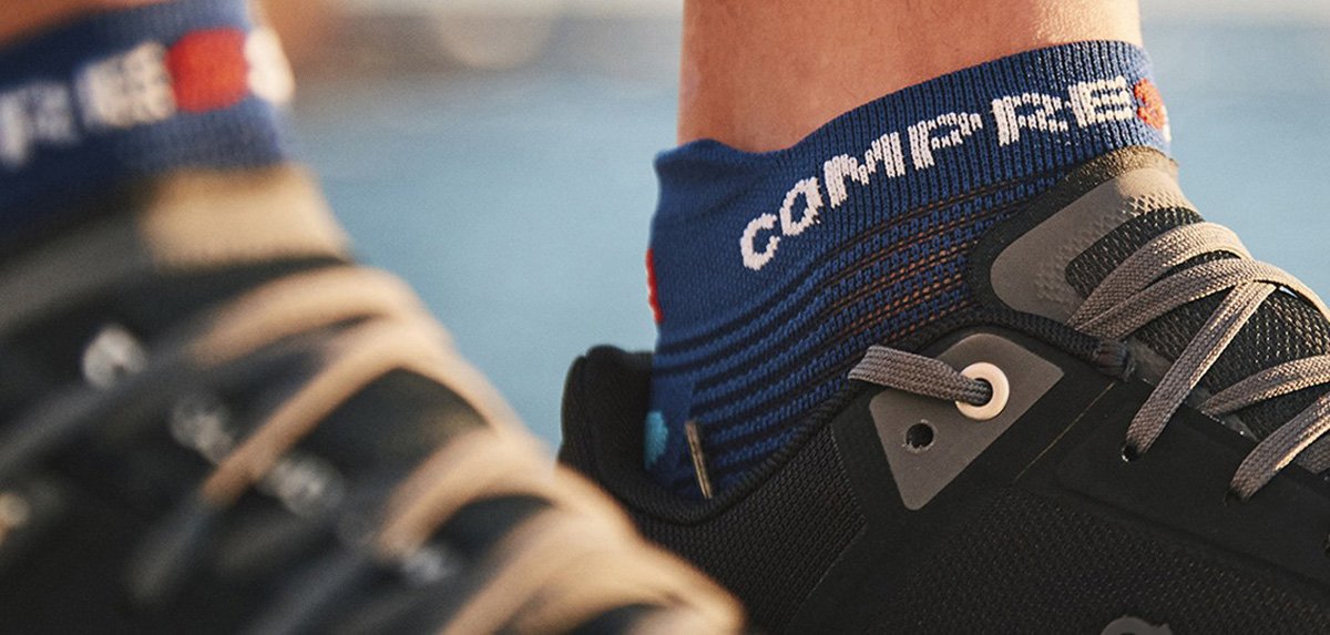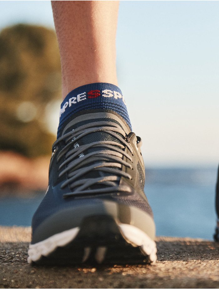 Поддержка свода стопы предотвращает скручивание ткани. Махровая накладка на мысках защищает ногти от травм при длительных пробежках. Предусмотрена разная толщина 3D-точек в области подошвы для целенаправленной защиты контактных зон и дополнительного сцепления стопы с обувью. 3D-точки в области лодыжки защищают ахиллово сухожилие, а уплотненная пятка гасит ударные нагрузки.