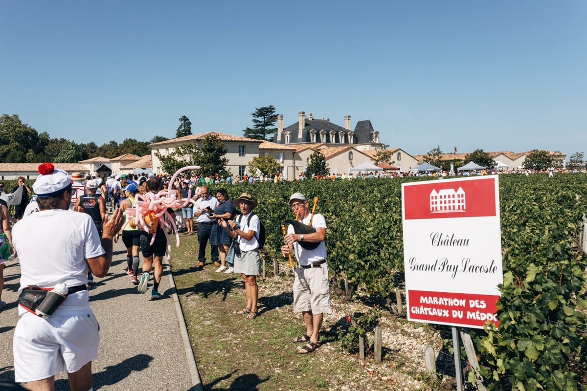 Для тех, кому мало мили, сразу в нескольких странах проводятся несколько винных марафонов: один из самых старых и известных — Марафон дю Медок в Жиронде (Бордо, Франция). На пунктах питания к привычной воде и коле добавляются бокалы вина и закуски в виде устриц, сыров и стейков. Это не просто бег, это настоящий карнавал и дегустационный зал под открытым небом среди более пятидесяти шато и виноградников. Большая часть участников превращает свою спортивную форму в карнавальные наряды (за лучший дают приз), каждый год для костюмов выбирают новую тему. В этому году старт запланирован на 6 сентября, с темой диско-80 х.