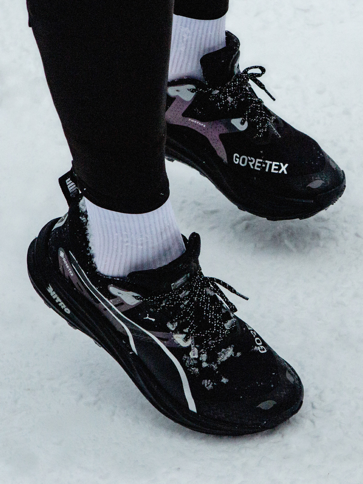 Сцепление зимой может быть хуже, чем летом, из-за минусовой температуры и обледенелой или заснеженной поверхности. Для лучшего сцепления можно выбрать кроссовки с более агрессивным протектором (трейловые), либо специальные модели для зимнего бега. Бывают кроссовки для бега по льду с металлическими шипами, обеспечивающие уверенное сцепление и контроль постановки стопы. Для большего комфорта можно использовать кроссовки, оснащенные мембраной Gore-tex. В них будет гораздо теплее, и ноги останутся сухими даже в глубоком снегу и при сильном морозе.